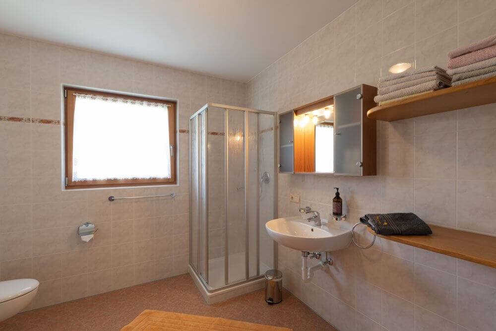 - 1 Badezimmer mit Dusche, WC und Waschbecken